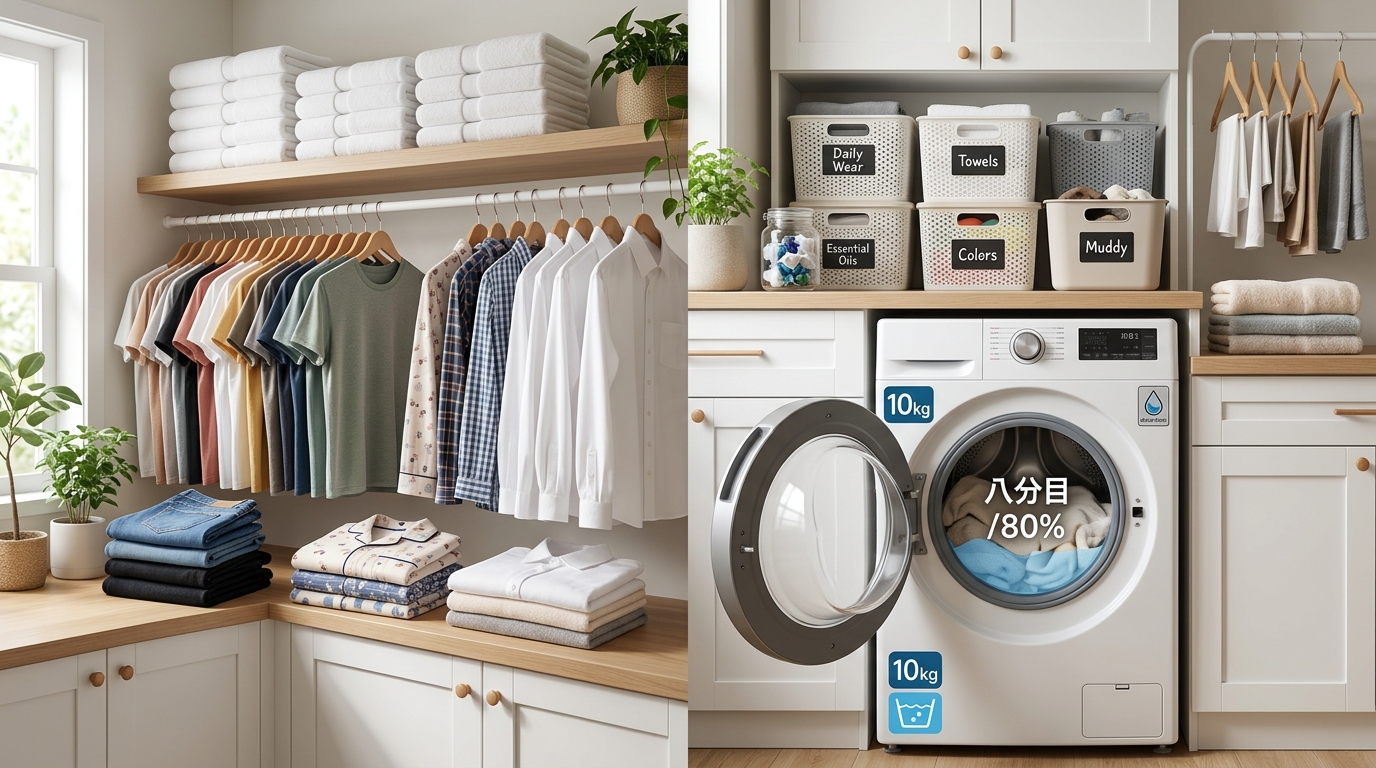 洗濯は洗うだけでは終わりません。干す、乾かす、畳む、しまうまでがワンセット。この工程をいかに効率化するかが、日々の負担を減らす鍵となります。