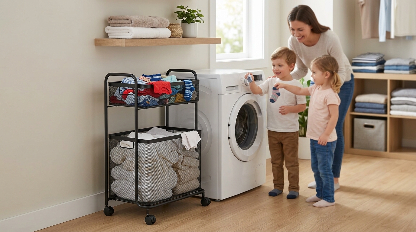 快適な暮らしへ!2段洗濯かごで家事10分短縮の秘密