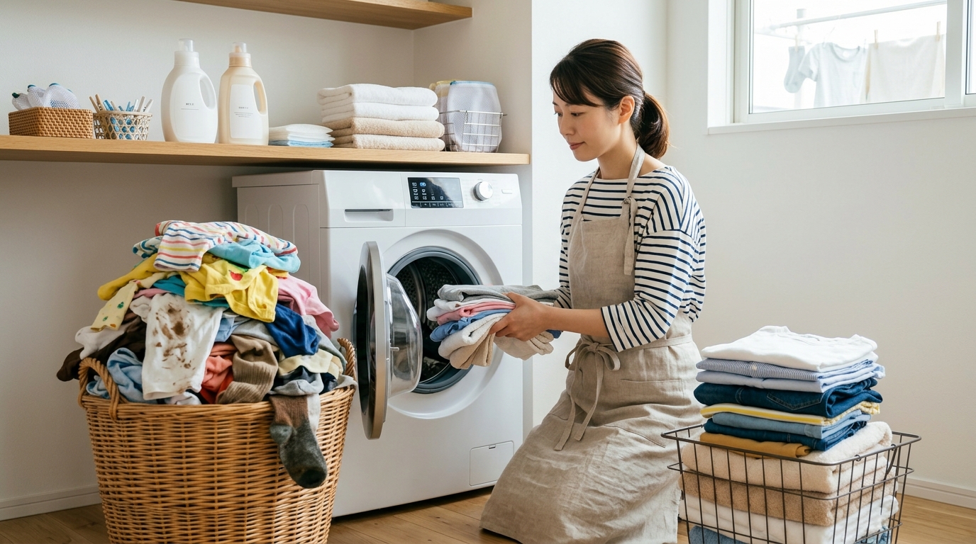 3.5kgが具体的にどれくらいの量なのかが分かったところで、次は「どうすれば快適に洗濯できるか」という実践的な話に移りましょう。毎日たくさんの洗濯物と格闘している身としては、少しでも楽に、効率よく済ませたいものです。