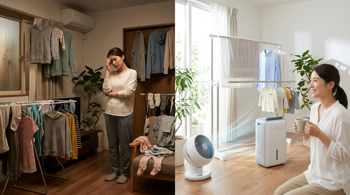 雨が続いたり、冬の寒い日だったり。気づけば部屋のあちこちに洗濯物がぶら下がっていて、まるでジャングルのようになっている……。そんな光景に、ため息をついた経験はありませんか?