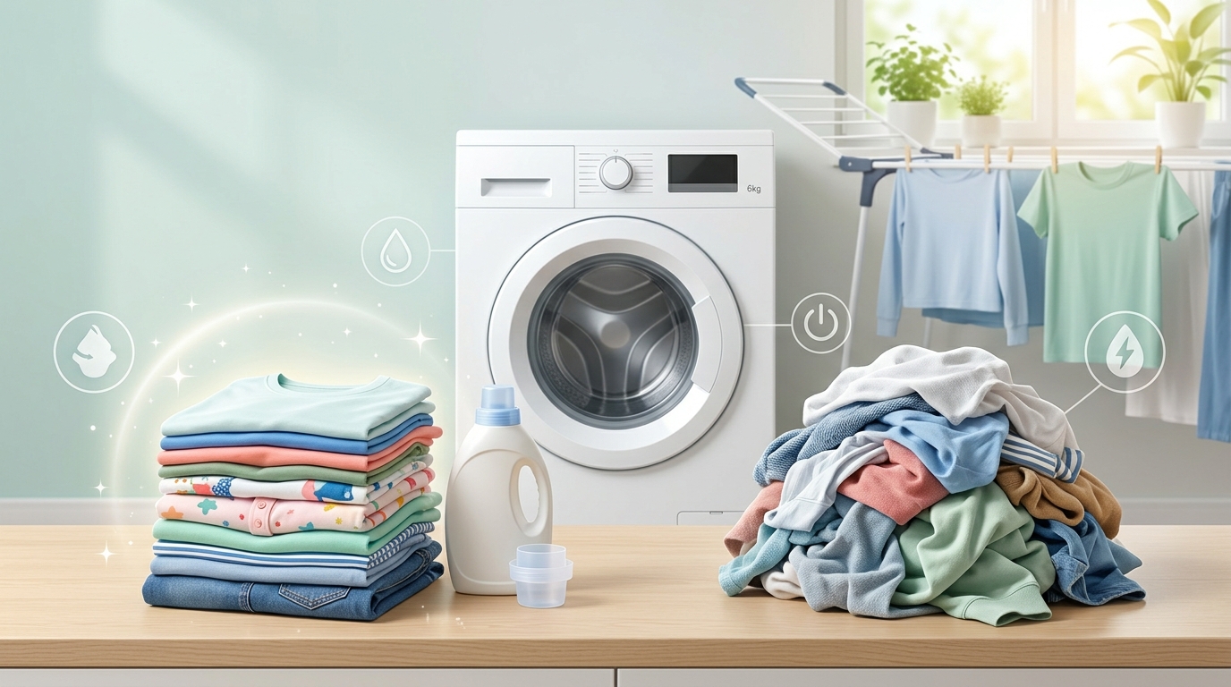 「また週末が来てしまった…」洗濯カゴから溢れんばかりの洗濯物を前に、毎週決まってため息をつくのが習慣になっていました。元気いっぱいの子供が2人いると、体操服に泥んこ服、食べこぼしに汗だくのパジャマと、洗濯物はあっという間に山になります。