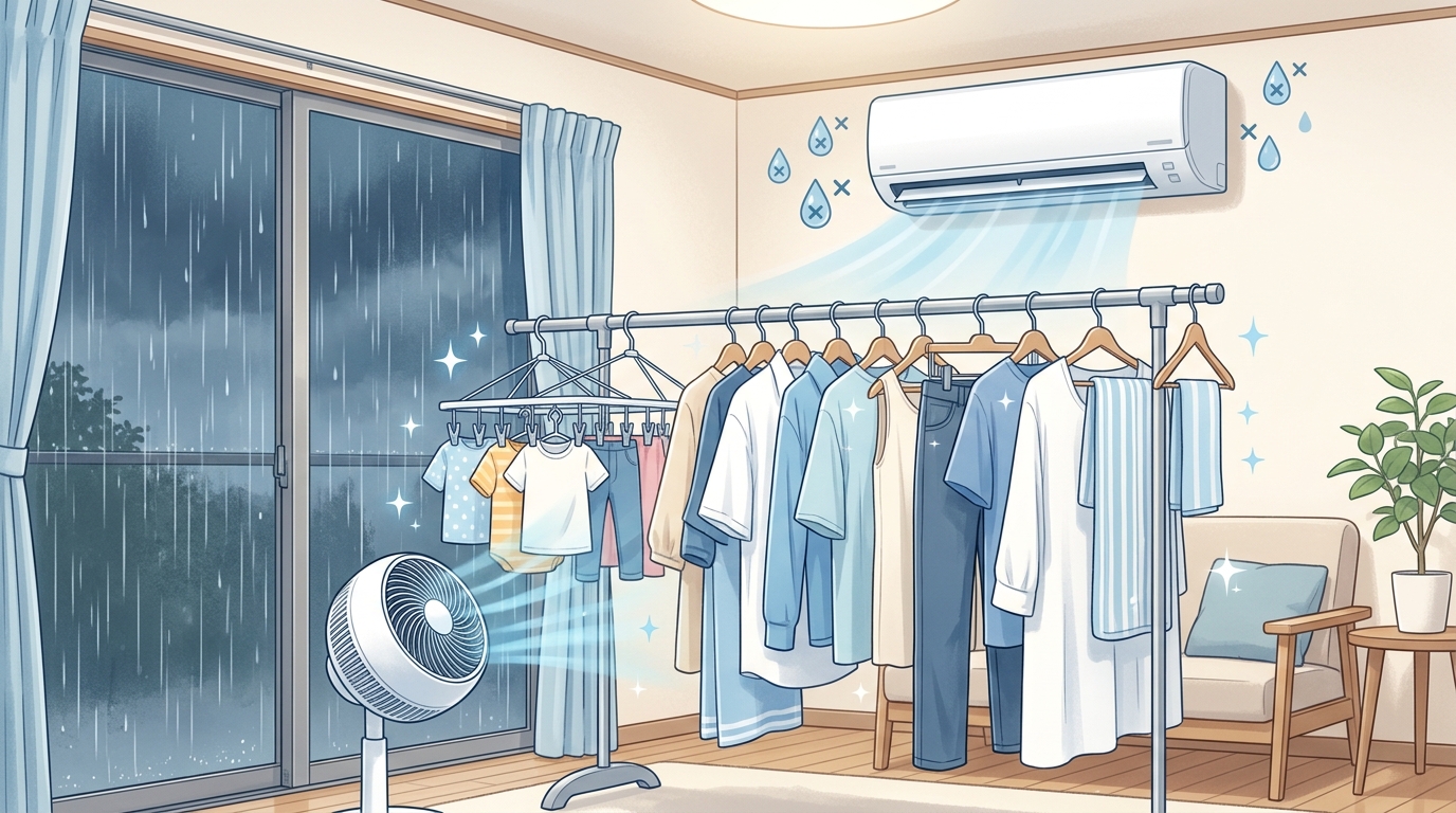 生乾きの臭いはもちろん、早く乾かさないと次に着る服がない!という状況は日常茶飯事。乾燥機はありませんし、浴室乾燥は電気代が気になる…と、いつも頭を悩ませていました。そんな時、ふと「エアコンの除湿機能ってどうなんだろう?」と思い立ち、半信半疑で試してみたのが始まりでした。