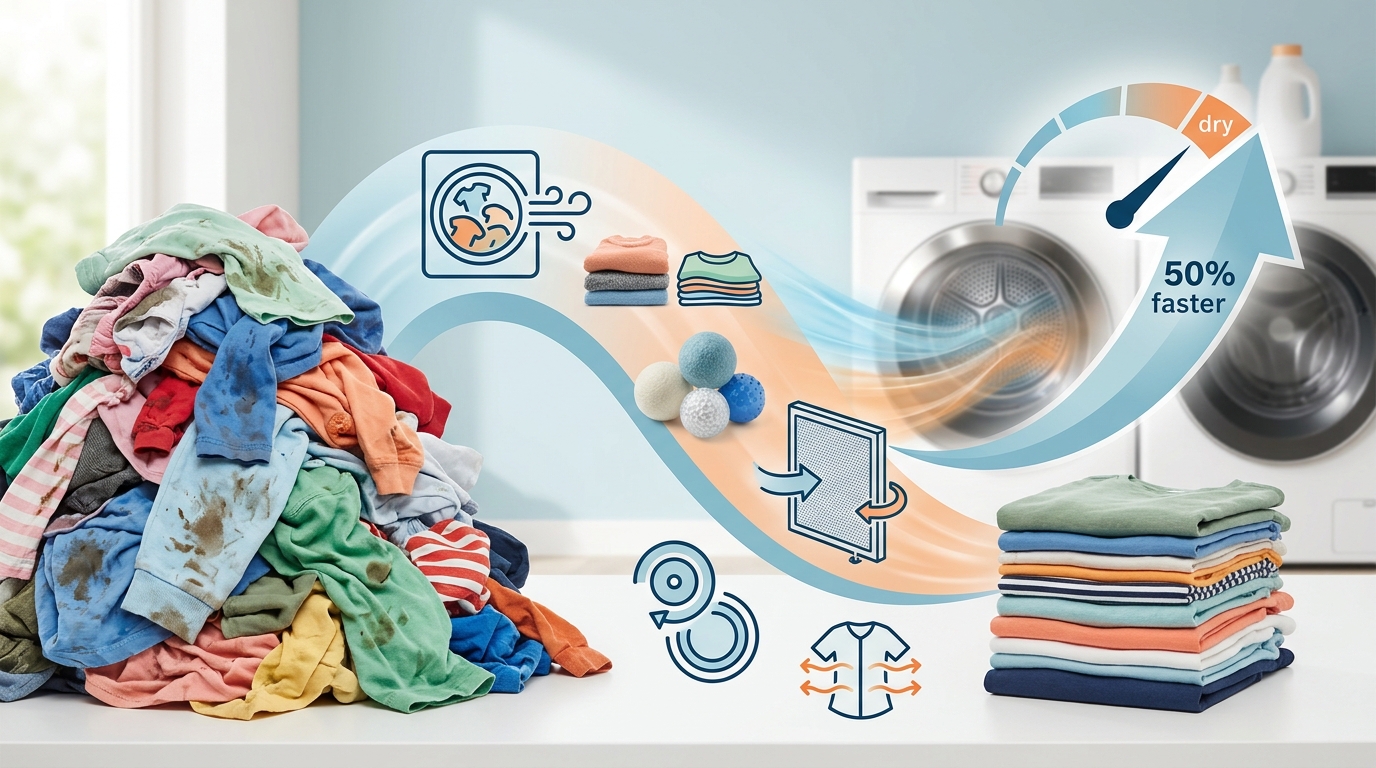 洗濯物、乾燥機で劇的時短!50%速く乾かす裏ワザ