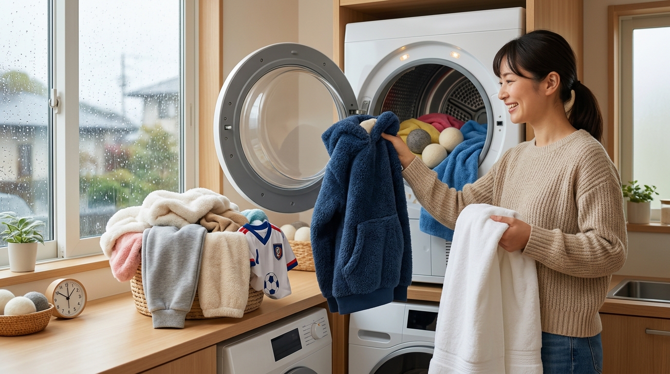 でも、乾燥機って本当に時間がかかる! 厚手の衣類なんて、軽く1時間以上は回さないと、なかなか完全に乾いてくれない。電気代も気になるし、何より、せっかく乾燥機に入れたのに、取り出してみると「あれ、まだちょっと湿ってる?」なんてことも少なくありません。あのガッカリ感、本当に共感できる方も多いのではないでしょうか。
