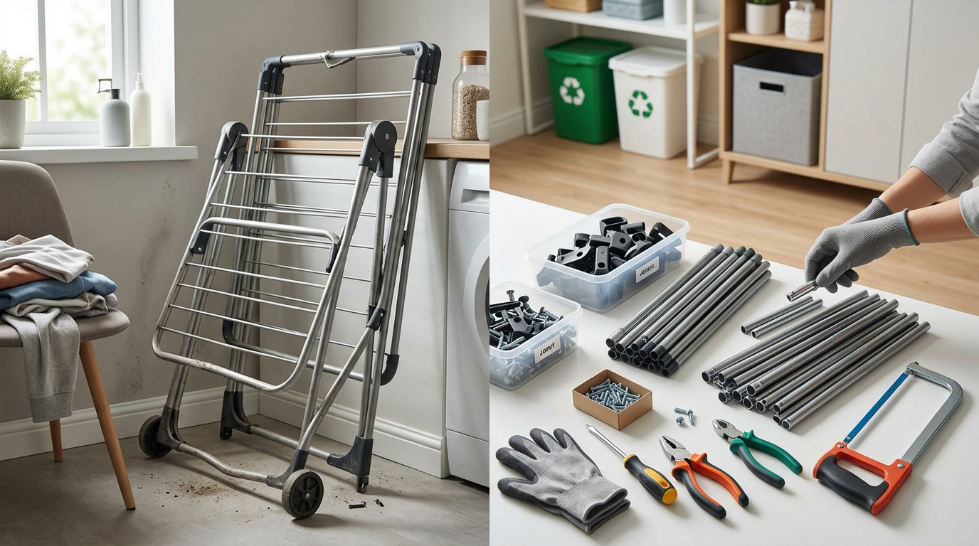 まず、物干しがどんな素材でできているか確認しましょう。主に金属(ステンレス、アルミなど)とプラスチックが使われているはずです。 - ステップ2:工具を用意する