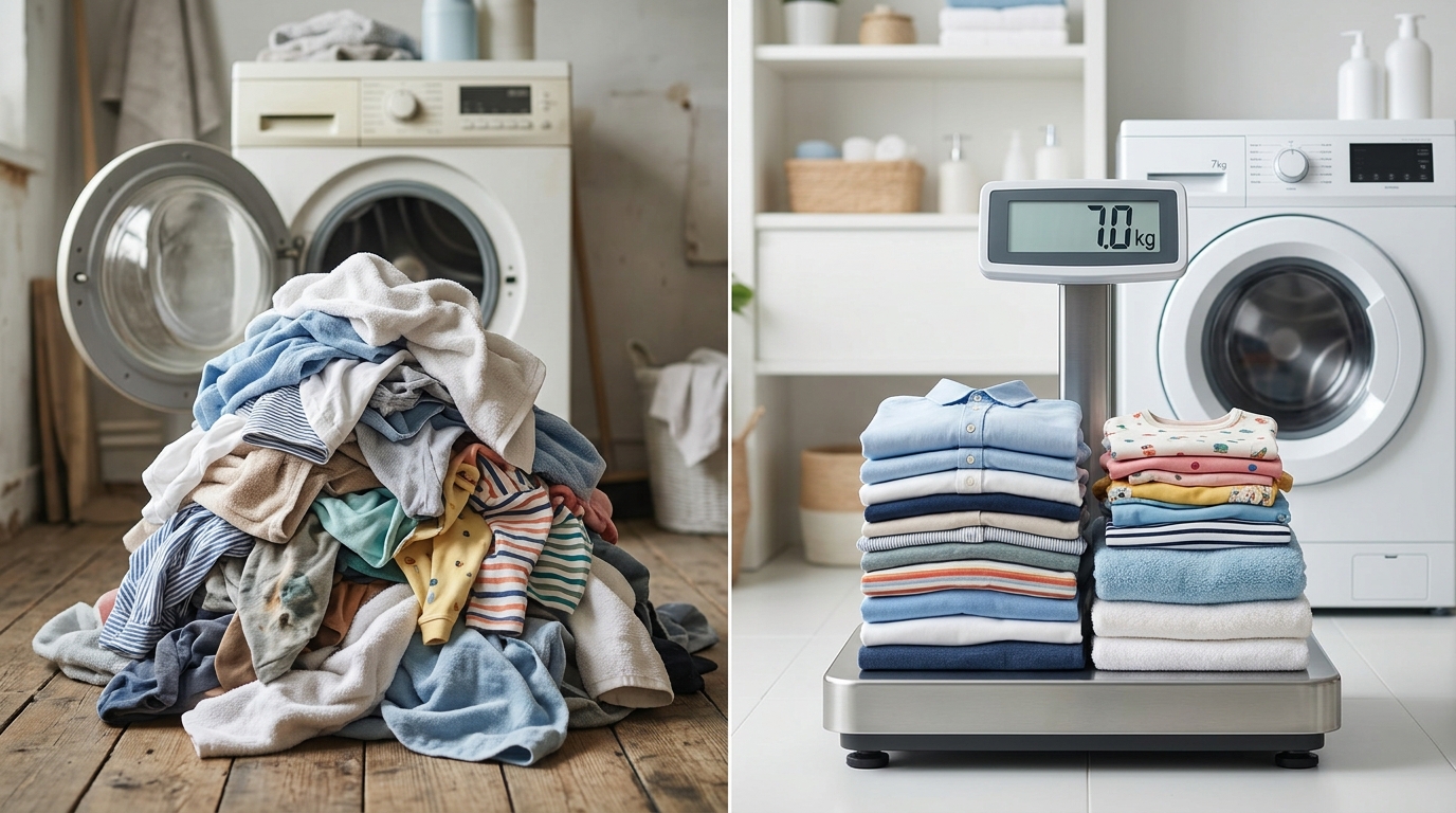 洗濯機の容量は「7kg」と表示されているものの、それが一体どれくらいの量なのか、正直なところピンとこない。詰め込みすぎて汚れが落ちていない気がする日もあれば、まだ余裕があるのに「洗いすぎかな?」と電気代や水道代が気になってしまう日もありました。この「見えない量」に悩まされることが、家事の中でも地味にストレスだったんです。