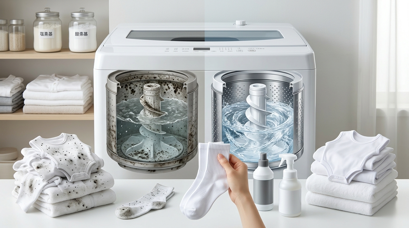 - 注意点: 長時間のつけ置きが必要です(目安は数時間~一晩)。剥がれたカビのカスが洗濯槽に残りやすいので、念入りなすすぎが必要です。