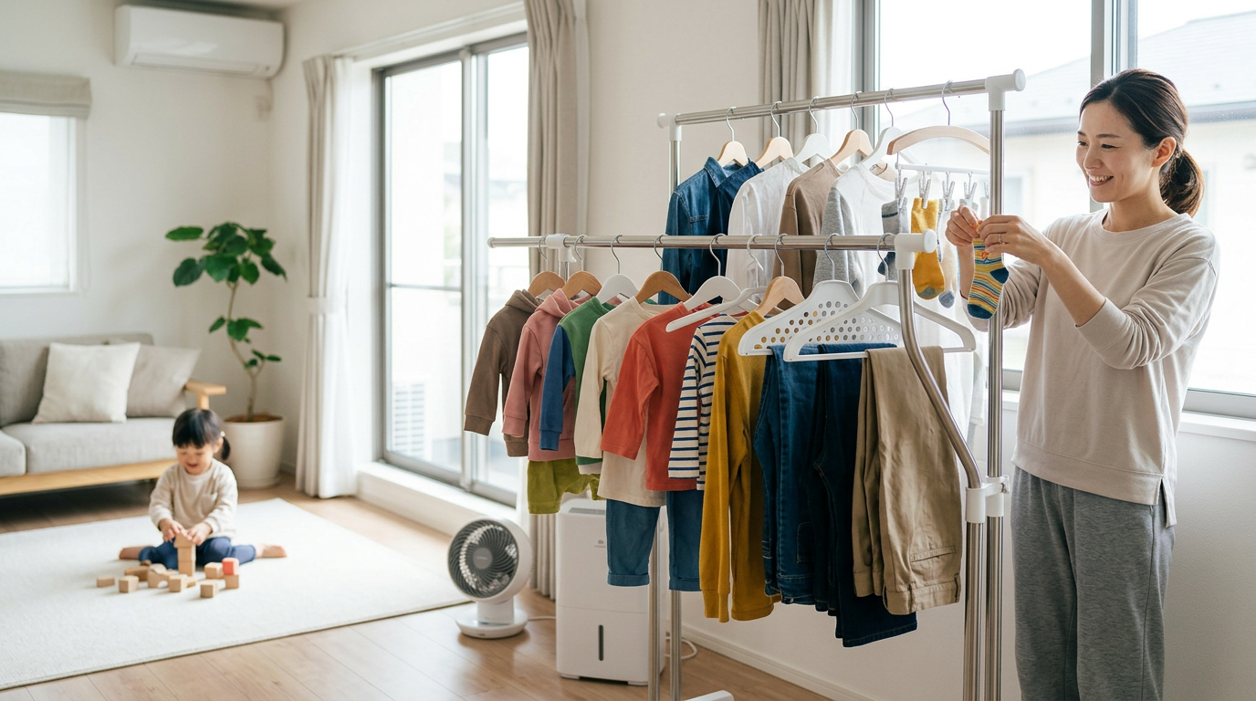 洗濯物干しハンガー一つで、乾燥が早まり、部屋がスッキリするだけでなく、私の家事に対するストレスも大きく軽減されました。洗濯物の量が多い、なかなか乾かない、部屋が散らかる……そんな悩みを抱えているのは、私だけではないはずです。特に子育て世代にとって、時間は本当に貴重なもの。少しでも家事を効率化し、自分の時間や家族との時間に使いたいと願っています。