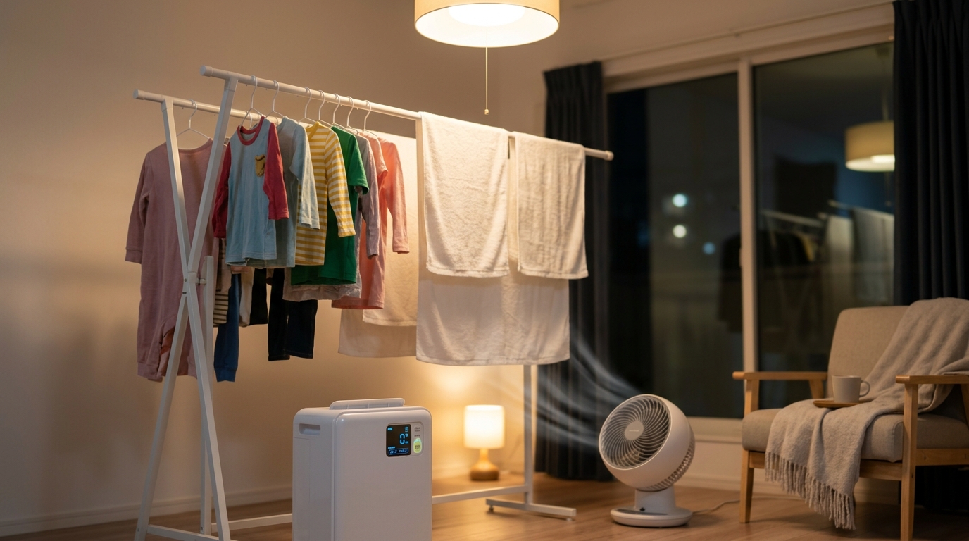 冬場は暖房のついでに乾燥させることもできますが、夏場は冷房と組み合わせて除湿するのも手。電気代が気になるかもしれませんが、乾かないストレスと天秤にかければ、その価値は十分にあるはずです。