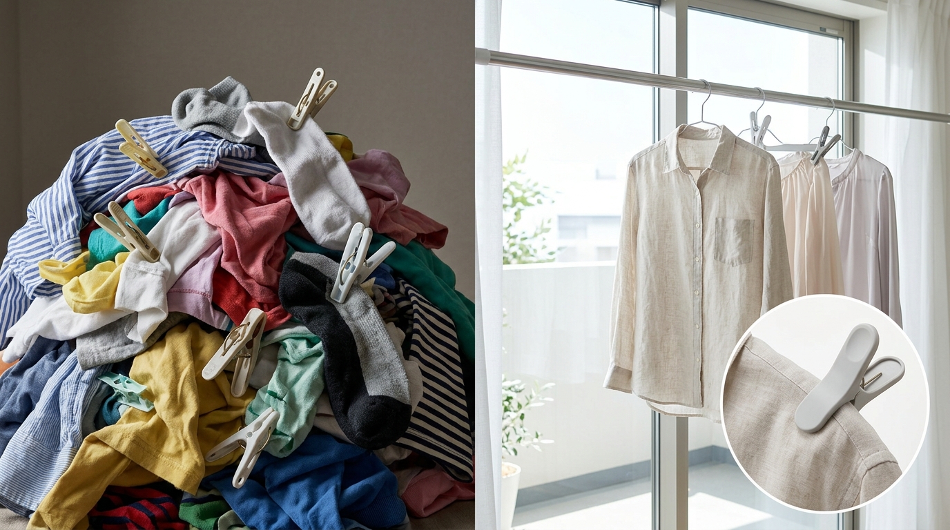 お気に入りのTシャツの肩にクッキリと残る跡。デリケートな素材のブラウスに挟んだ部分が変形してしまうこと。夫のワイシャツの襟元についたピンチ跡を、朝の忙しい時間にもう一度アイロンで伸ばす手間。これらの小さなストレスが積もり積もって、洗濯という家事をうんざりするものに変えていました。