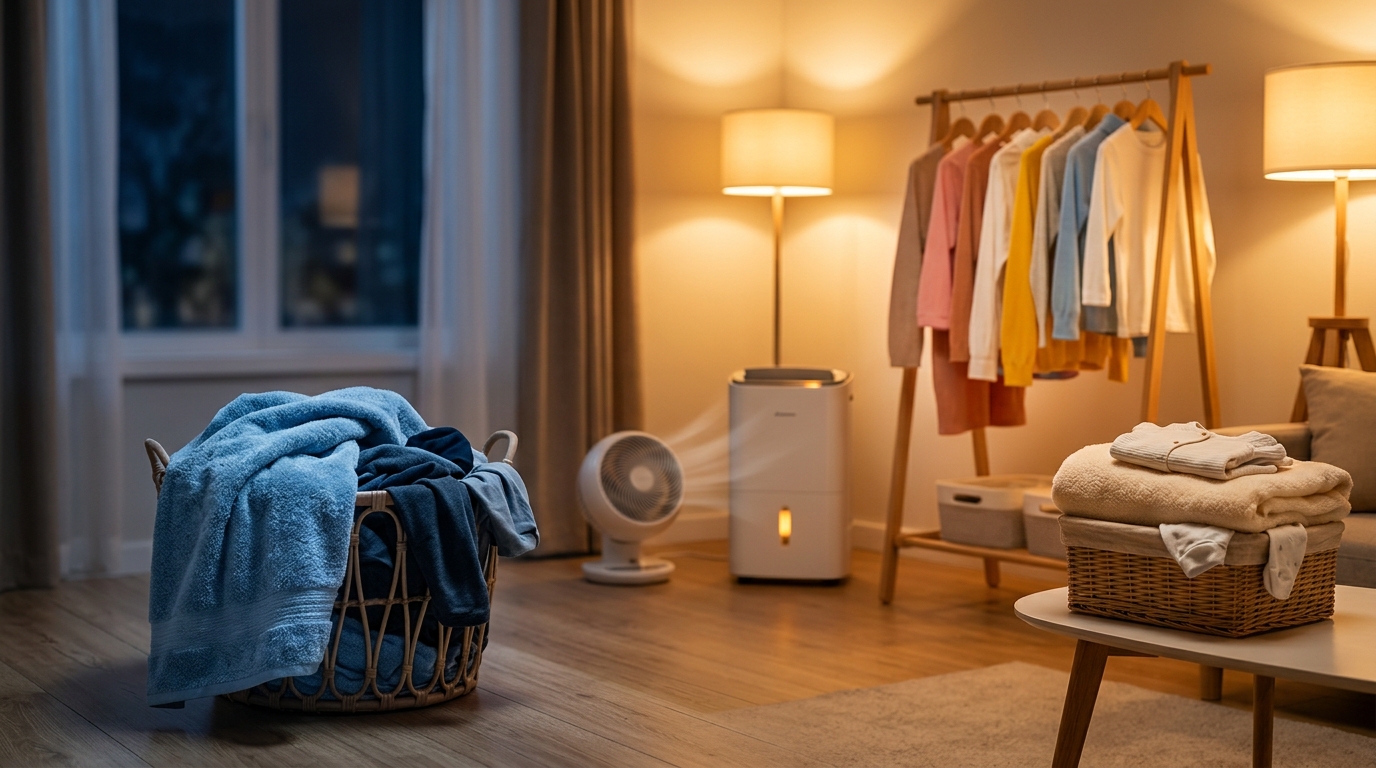 - 除湿器でカラッと速乾: 雨の日や湿度の高い日は、迷わず除湿器をON。洗濯物の下や横に置いて、部屋全体を乾燥させます。最近の除湿器はパワフルなので、一晩で厚手のものもかなり乾いてくれます。生乾き臭の防止にもなるので、もはや手放せません。