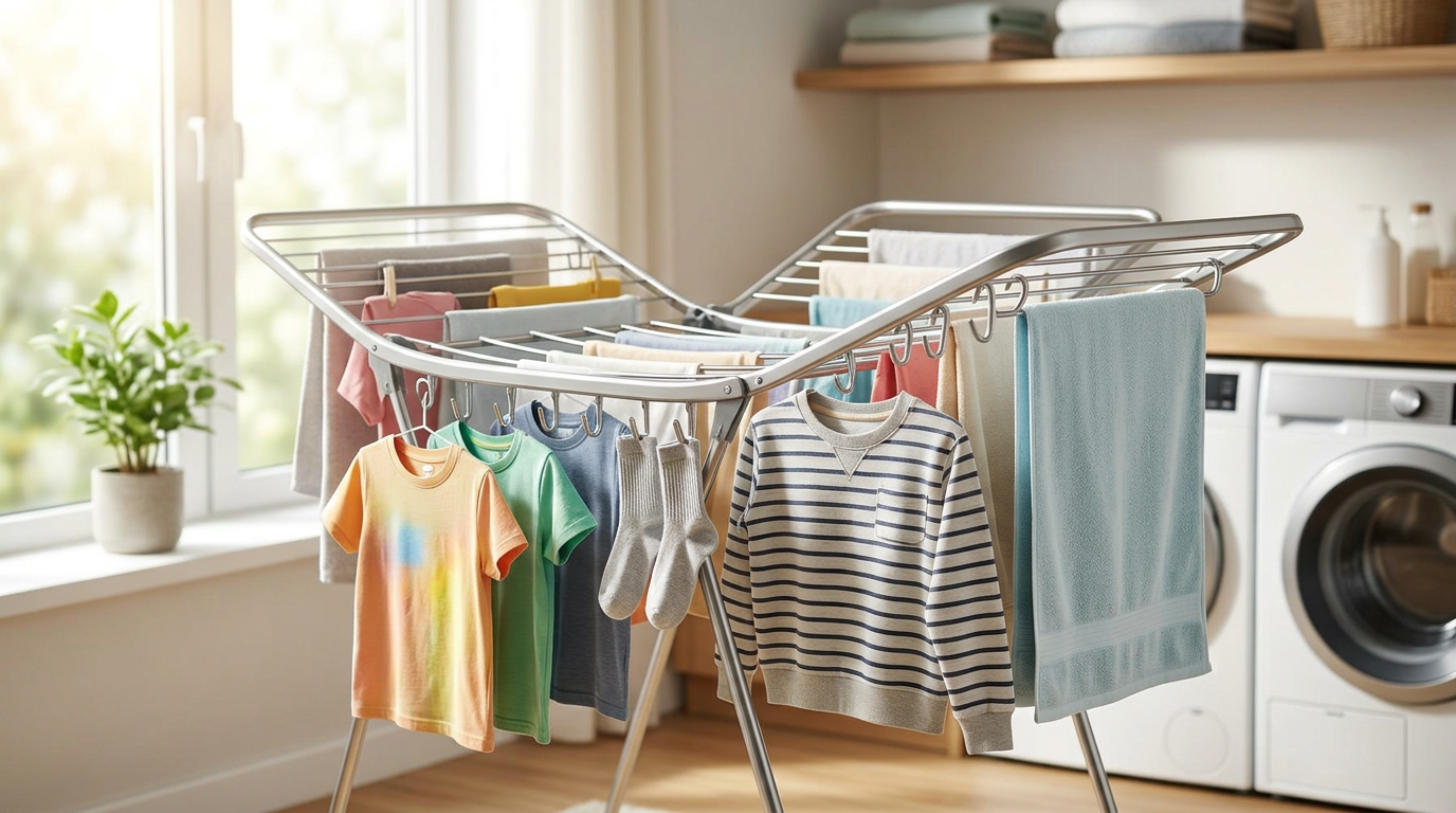 朝からフル回転の洗濯機が止まることなく回り続け、気づけばリビングは大量の洗濯物で埋め尽くされていました。2人の子供たちの汗だくになった服、給食のナフキン、泥んこになった体操着。晴れていればベランダに干すのですが、雨の日や花粉の季節、そして何より共働きで日中留守にすることが多い我が家では、部屋干しが日常です。
