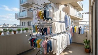 狭いベランダも快適に!屋外折りたたみ物干しで大量干し&時短収納