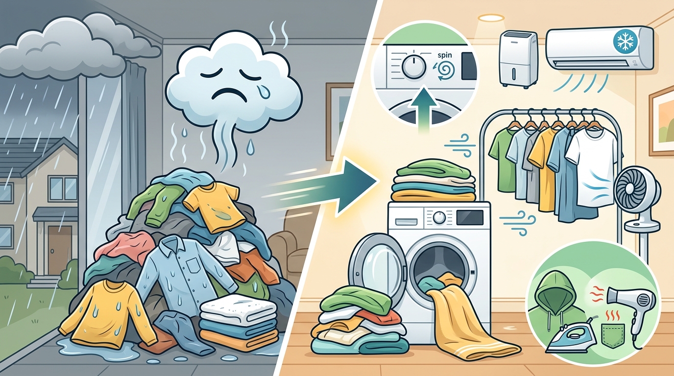 雨で洗濯物が濡れてしまった時の絶望感、本当にわかります。私も何度「もう今日の洗濯は諦めようか…」と思ったことか。でも、諦める必要はありません!
